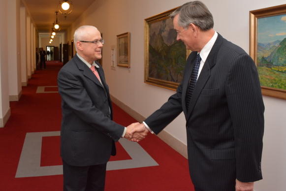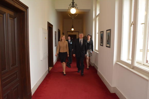 Ředitel poradců a poradkyň předsedy vlády Vladimír Špidla se 15. října 2014 ve Strakově akademii setkal s bývalým prezidentem Slovinské republiky Danilem Türkem.