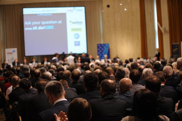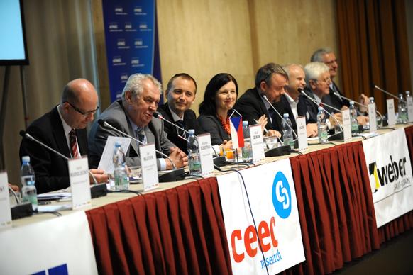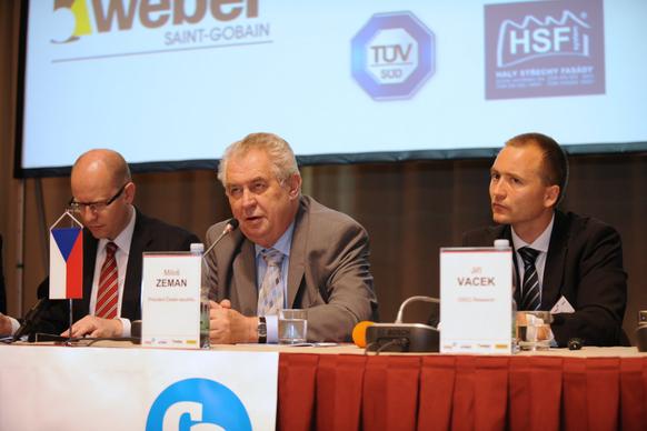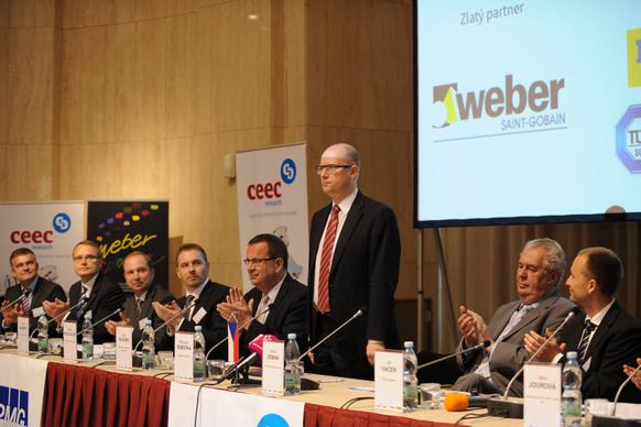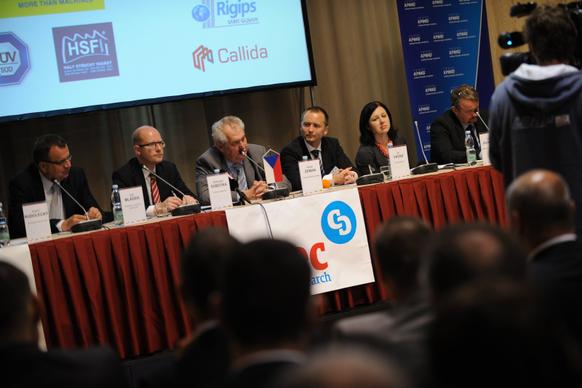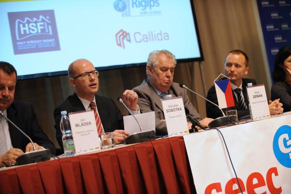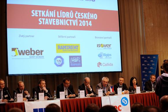 Projev předsedy vlády ČR Bohuslava Sobotky 29. května 2014 v sídle České národní banky na celostátní konferenci Setkání lídrů českého stavebnictví 2014. Konference se také zúčastnil prezident České republiky Miloš Zeman, ministryně pro místní rozvoj Věra Jourová a ministr průmyslu a obchodu Jan Mládek.