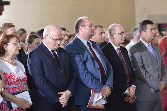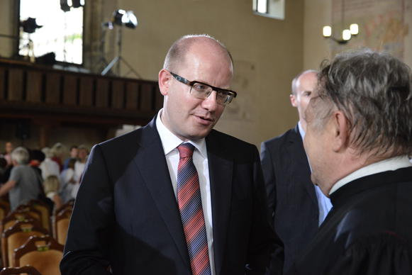 Předseda vlády ČR Bohuslav Sobotka se zúčastnil slavnostní bohoslužby konané v pondělí 6. července 2015 v Betlémské kapli u příležitosti 600. výročí upálení Mistra Jana Husa.