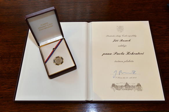 Předseda vlády Jiří Rusnok dnes udělil spisovateli a dramatikovi Pavlu Kohoutovi čestnou plaketu. Stal se tak desátým držitelem tohoto ocenění.
