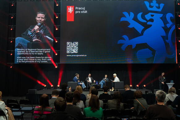Součástí programu byla také debata na hlavním pódiu, která nabídla pohled inspirativních osobností státní správy na to, proč má práce pro stát smysl a jaké profesní příležitosti může nabídnout lidem s různým vzděláním a zkušenostmi.