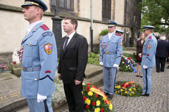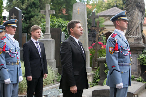 Vedoucí úřad vlády ČR Pavel Dvořák uctil ve čtvrtek 26. června 2014 památku obětí totalitního režimu na Ďáblickém hřbitově a na Vyšehradě.