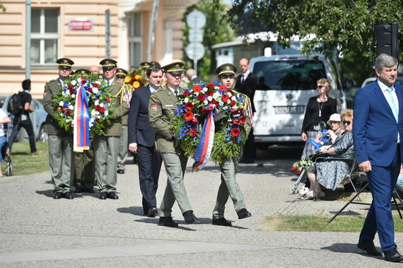 „Češi a Slováci hlavu nesklonili, máme statisíce hrdinů. Po nacistické okupaci Československa 15. března 1939 působili, bojovali a svůj život obětovali v domácím či zahraničním odboji proti těžkému nepříteli, hitlerovskému Německu, které vyznávalo zrůdnou rasovou nacistickou ideologii. Ideologii, která s Čechy nepočítala, potřebovala získat pro Němce životní prostor i na úkor Čechů, dalších Slovanů či Židů. Ideologii, která vedla až k průmyslovému vraždění v koncentračních táborech,“ uvedl vedoucí Úřadu vlády Radek Augustin a dodal: „Naši protinacističtí odbojáři se angažovali pro jedno slovo: Československo. Aby opět mohlo být svobodné a mohli jsme vyvěšovat nádherný červenobílý prapor s modrým klínem. V naší paměti vždy zůstanou nacisty vypálené obce jako Lidice, Ležáky, Ploština, Prlov anebo Český Malín na Volyni nebo barbarské metody nacistů v koncentračních vyhlazovacích táborech. Vzpomeňme několik jmen zavražděných a umučených: Vladislav Vančura, Karel Hašler, gen. Bílý, gen. Vojta, gen. Homola, gen. Eliáš, politici Antonín Hampl, Ladislav Rašín a další. Nemůže být pochyb, že v případě vítězství nacistů ve druhé světové válce by se o Češích mluvilo jen v učebnicích, neboť by většina byla zavražděna, přesídlena nebo asimilována podle nacistických rasových teorií.“