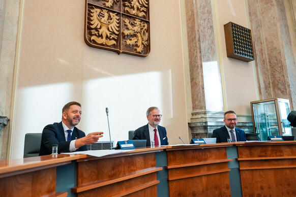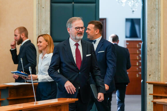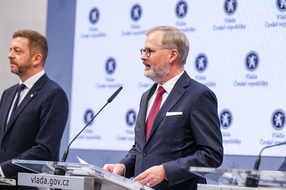 „Jsem přesvědčen, že naše vláda byla vláda úspěšná. Když jsme přebírali vládu po vládě Andreje Babiše, tak jsme čelili jako země řadě velkých problémů. Doznívala ještě pandemie covidu-19, přicházela nová, silná vlna, museli jsme se vyrovnávat s krachem Bohemia Energy a s rostoucími cenami energií, s rostoucí inflací. Byli jsme země, která nehospodařila dobře, rychle se zadlužovala, byli jsme energeticky závislí na Rusku. A do těch všech problémů, které jsme museli řešit prakticky hned od našeho nástupu, přišla válka – ruská agrese na Ukrajině a všechny následné problémy, s nimiž se musela Evropa i Česká republika vypořádat včetně masivní uprchlické vlny,“ připomněl premiér v demisi.