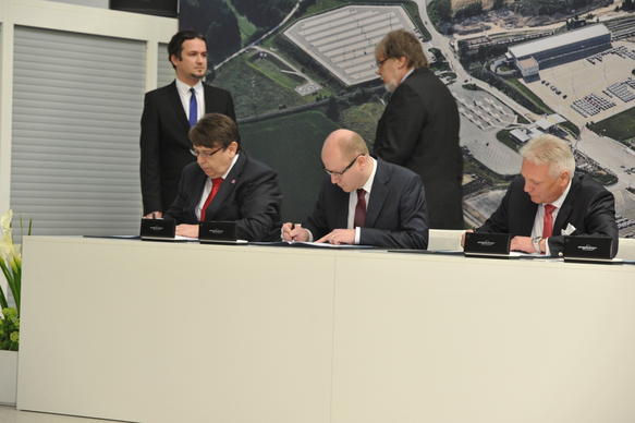Dnes došlo k slavnostnímu podpisu Memoranda o spolupráci mezi ČR, společností Škoda Auto a Královéhradeckým krajem, jenž proběhl v rámci návštěvy premiéra Bohuslava Sobotky, ministra průmyslu a obchodu Jana Mládka a hejtmana Královéhradeckého kraje Lubomíra France. Podpis navazuje na rozhodnutí vlády schválit koncept regionální podpory v souvislosti s investicí Škody Auto v Královéhradeckém kraji, kde automobilka proinvestuje zhruba 7,2 miliardy korun.