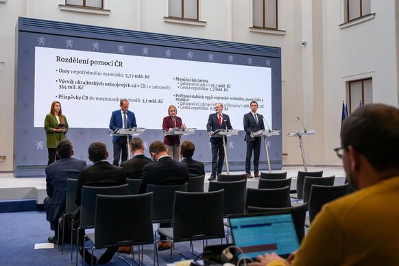Vláda projednala souhrnnou informaci ministryně obrany o dosavadní vojenské pomoci, kterou Česká republika od roku 2022 poskytla Ukrajině vojensky napadené Ruskou federací. „Za celou dobu války jsme jako Česká republika dali na pomoc Ukrajině přibližně 17,4 miliardy korun. To je účetní hodnota darovaného nepotřebného materiálu ze skladů, nákupů nebo výcviku ukrajinských vojáků. Obdobný objem peněz, 25 miliard korun, jsme naopak získali zpět financováním ze strany Evropské unie či formou techniky ze strany Spojených států nebo Německa,“ shrnul premiér Petr Fiala.
