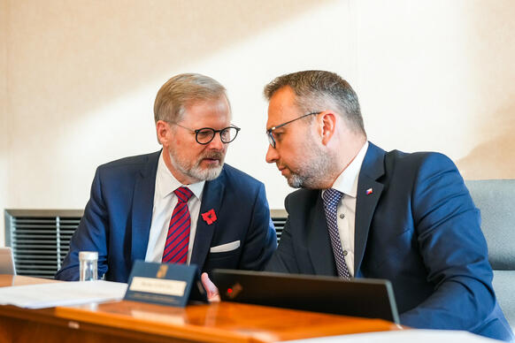 Návrh státního rozpočtu počítá pro příští rok se schodkem 237 miliard korun, což je zákonem o rozpočtové odpovědnosti stanovený limit, a nad rámec tohoto schodku obsahuje dvě strategické bezpečnostní položky, a to 18,3 miliardy korun na projekt dostavby jaderné elektrárny Dukovany a 30,7 miliardy korun na obranné výdaje státu. „Znovu jménem naší vlády apeluji na vznikající koalici, která se z velké části zaklíná rozpočtovou odpovědností, aby tyto zákonem stanovené parametry dodržela a aby výdaje na energetickou a vojenskou bezpečnost naší země neutopila v provozu, protože by to ohrozilo naši bezpečnost a také zbytečně zadlužilo občany České republiky,“ podotkl premiér v demisi Petr Fiala.