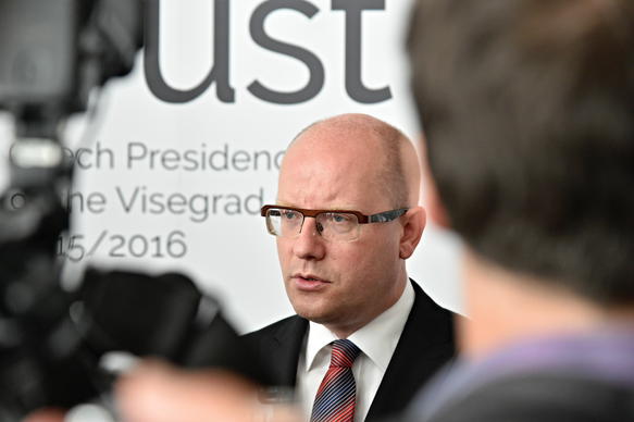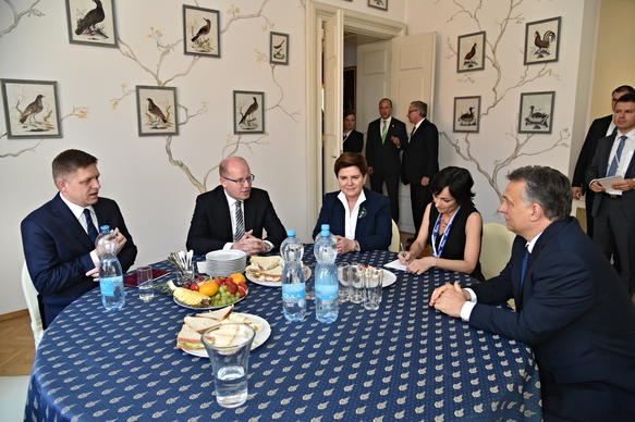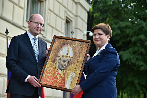 Pomyslnou štafetu předsednictví předal český premiér Bohuslav Sobotka polské premiérce Beatě Szydlové na summitu předsedů vlád zemí V4 v Praze 8. června 2016.